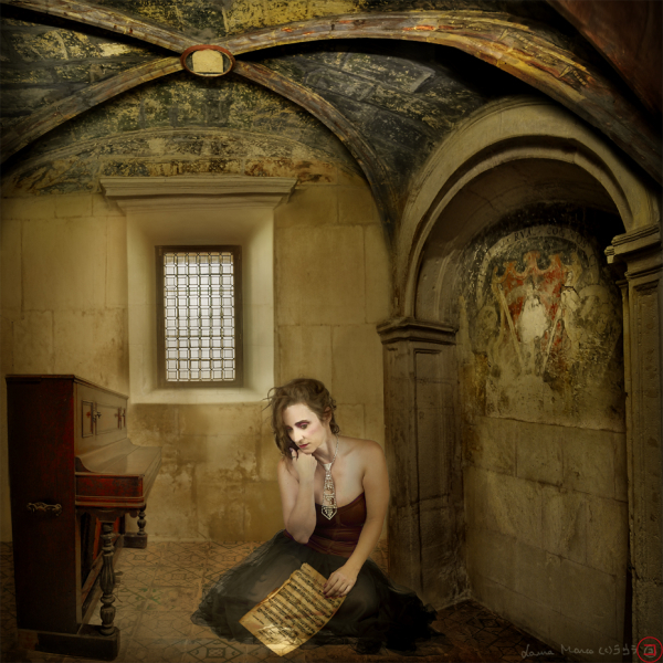 In that lonely place painted in faint light colors, the woman was reclined, nearly inert, upon a dream. Sat on the floor, feeling comfortable inside, a proper temple for that garish decayed piano. As she rested there, she was awfully lazy and confused. At the end of that quiet day, she was going to play the musical score, though she hesitated for a moment and bowed her head in doubt. Was it all well with her?, there was something that withheld her desire to play. And yet again, there was something that was not in order. For long she pondered on the notes, maybe was not the piece of music she wanted. Neither would that music be herself.