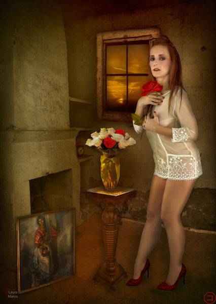She had spent the entire week sewing on her dress, her dance dress... an excuse to enjoy and dance and dance… giving way to the overflowing joy that comes to us in these short moments in life. Since we can't hold life back, let's at least enjoy it without any measure, or so she was thinking at that precise moment. To do this, she had provided herself with a red beautiful comb and she was just missing the rose, better several roses to decorate her hair.