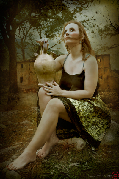 When the woman takes a bucket of water from the well, she does it knowing that she plunges it in the known, in the backwater of purity well hidden in the bowels of the earth.The guardian land of its purity, guardian of a certain security of mind. With some effort the bucket is taken from that pure, pristine mirror, broken at times in waves. What she does deform the surface, a false copy of reality. Who can I see, what can I see? I look at myself in a world I don't recognize, full of banality ... so false that it crumbles when she sank her bucket, in that cold and humid silence, in that alluring darkness.