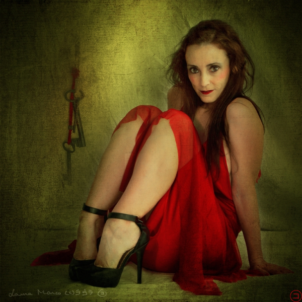 For those who know the meaning of the word badila (shovel), they will understand quickly why I named this work so.Badila is a tool, kind of spatula, which is used to stir coals in braziers. The shovel I took in my hand has the traditional shape that used to have those tools associated with fire, ovens, stoves etc. In the center there's a kind of small hollow or sunk to hold coals.From this word, it comes the expression "give someone with the shovel on the knuckles" meaning: annoy someone, vex them. Sure if they gave on knuckles, it'll hurt.I have always drawn my attention to old things. And it makes me wonder how to recreate them. This brazier and this shovel I have borrowed them from a friend of mine and the environment where the image is taken, is placed by the river, an abandoned factory I see all days when I'm doing athletic march.When I was admiring those nice windows, their old bars, I thought about the day, I would go to photograph the windows, as well as the environment. It was all collapsing and being very careful, I made the shots. In the background, reeds are unmistakable landscape of this area by the river.Such compositions are a reflection of the person who's making them and his/her inside. Not everyone chooses to dress like someone almost abandoned, to sit in a place dismantled and apparently evaded from the surroundings, just having fun in the heat of the coals and reflexes of flames as the only things that binds her conscience to the world.I like a lot to make glamorous pictures with red lips and full of mascara, but of those there're many everywhere ... it seems then that women just want to be very beautiful or romantic or mystical, but ...this image was not aiming at anything of that kind. I just wanted to reflect a state of despondency, almost abandoned.The woman feels abandoned, and there's a lack of human warmth, seeking warmth in the coals. Soon the pile of coals will lose its strength, meanwhile she's remaining quiet to relax herself with her legs and arms warm, spellbound in sweet sensations.The friend who loaned me the brazier to make this composition, told me that her parents used it until this last year. Full of coals, they took it with them to their bedroom.I also spoke with his elderly mother and other women and our conclusion was really that thanks to them, many people have slept hot, braziers had taken away too cold from families, when there was no other means to keep warm in winter.Well, I just want to add that ... there's little I like as much as to write or to tell which feelings or concerns led me to create a scene or a work.I like to write about those things as much as making the composition.Not everyone likes reading, in the photography forum I've joined some years ago, they've thrown me a lot back in my face that I expand writing on what I do, I mean ... to write too much.There, you can only say technical things or chat lines marked very specifically.I really do not think photography excludes a free clarification of its author.They made me feel very uncomfortable, like a pariah or a rare or misplaced person. As if in the end, I have to apologize for something I do not even know what it is.Usually a typical reaction with what we do not understand: it's to put it aside and isolate.Well, now I'll have a rest from the photography forum I'll be off and of course !, I'll write whatever I feel about my images or whatever.Finally, I realize that one reason that drives me to write about the feeling that generated each artwork, where its germ nests ... is that by doing so I can really enjoy it more ... because after it'll become an image to be viewed when desired, but I'm not going back on it anymore.I know friends who are also dedicated to artistic photography, returning to their works continuously, again and again. I could not do it... I will not go back on it.So this writing means partly my tribute and recognition to its beauty.This way I feel is not mine alone, best was described by another photographer friend of mine, when he said, "Laura, if you let me do a confession, it takes me some time to review your work, it's something I do on purpose, and why ?, I commented, I am very attentive to the new that you expose, and look, and look again and tasting it, as if I would say that exudes a subtle magic, so subtle that once the comment is made, it's like cutting the umbilical cord that binds me to the magic and I'm awaiting your next. "Today I enjoy "Badila" with you ... then I'll cut the cord that binds me to it and it'll be part of all the beautiful things that people create daily, in an effort to retain and capture the beauty around us and to understand better this our world . Today I feel it tied to me, after it will have its own soul. -