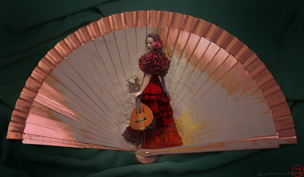I can say that on the technical side with what I've enjoyed the most, has been the fact of photographing the fan and searching for brightness with the use of lights ...This is my fan!, it should be unfolded slowly but firmly and rhythmically hitting the chest with it to direct air to the face ... soft, then fast, then soft and so on... with a bright cadence, always! It relaxes me a lot to see women using fans in summer because the air that is produced reveals being really soft, the sound of wooden rods is so sweet that I start feeling sleepy, it numbed me much.